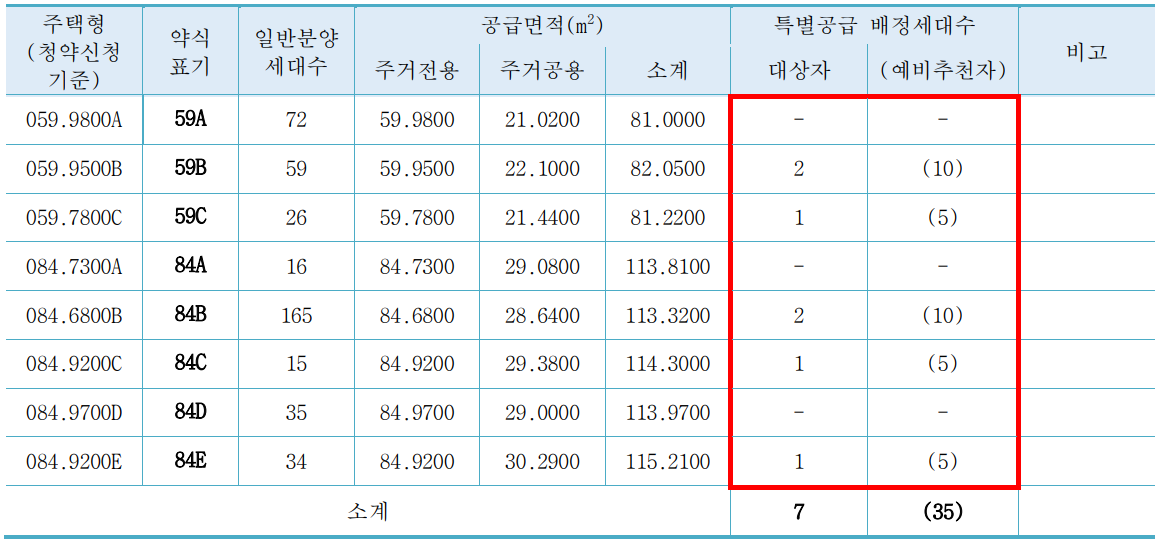 기관추천 특별공급 세대수