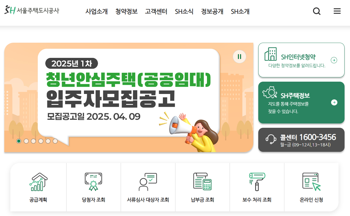 SH청약센터는 서울주택도시공사가 직접 운영하는 온라인 청약 포털입니다. 서울시에서 공급하는 공공분양주택, 임대주택, 도시형생활주택, 신혼부부·청년주택 등의 청약정보를 통합 제공하며, 공급계획부터 청약 접수, 당첨자 발표, 입주 안내까지 전 과정을 책임지고 있어요.