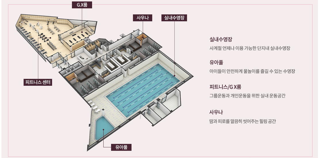 다양한 테마가든과 풍부한 조경의 공원형 단지설계 및 대단지 아파트에서라 가능한 수영장, 사우나, 골프연습장, 작은 도서관 등 입주민 편의시설이 들어섭니다.