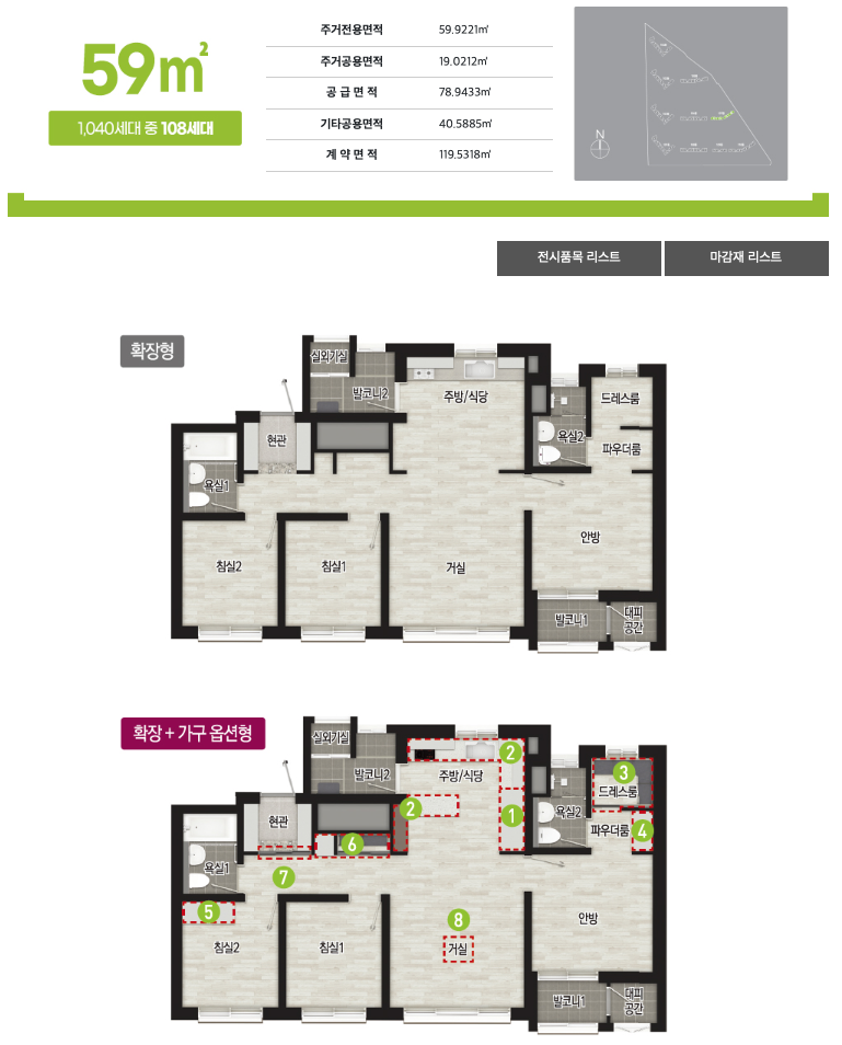 타입별 확장 선택형 유형에 따라 평면이 상이하며, 확장 공사비 등 해당 내용을 반드시 모델하우스에서 확인하시고 청약 및 계약을 진행하셔야 합니다.