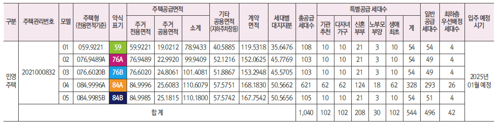 총공급 세대수는 1,040세대이며, 일반공급은 496세대,