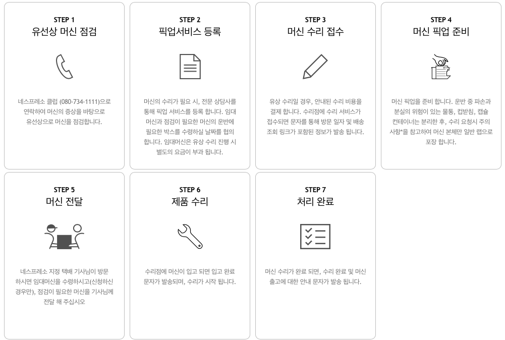 네스프레소 클럽 고객센터 전화번호 080-734-1111을 통해 간편한 픽업 신청으로 머신 수리 접수를 할 수 있으며, 머신 수리가 완료되면 안내를 받을 수 있습니다.