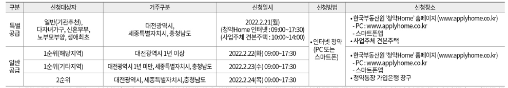 대전광역시 서구 도마동 145-8번지 일원에 1,558세대를 공급하는 호반써밋 그랜드 센트럴아파트 호반건설이 올해 대전에서 진행하는 첫 신규분양 정보입니다. 도마변동11재정비촉진구역에 짓는 아파트로 지하 4층부터 지상 최고 35층 11개 동 규모로 전용면적 39㎡부터 84㎡까지 일반분양 물량은 1,017세대를 공급합니다. 2월 21일 특별공급을 시작으로 2월 22일 1순위 해당지역, 2월 23일 1순위 기타지역, 2월 24일 2순위 청약이 진행되므로 분양정보 확인하고 준비해 보세요.