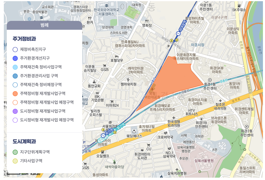 휘경3구역 자이 아파트 위치는 서울 동대문구 휘경동 172번지 일대로 제2종 일반주거지역, 제2종 일반주거지역, 제3종 일반주거지역으로 구성되어 있으며 면적은 64,326㎡입니다.